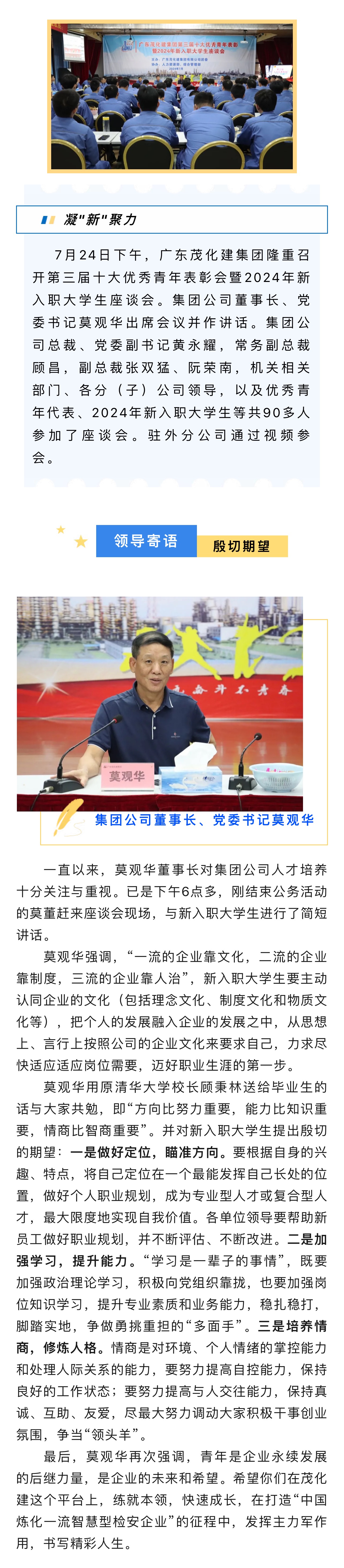 集團(tuán)公司召開第三屆十大優(yōu)秀青年表彰會暨2024年新入職大學(xué)生座談會