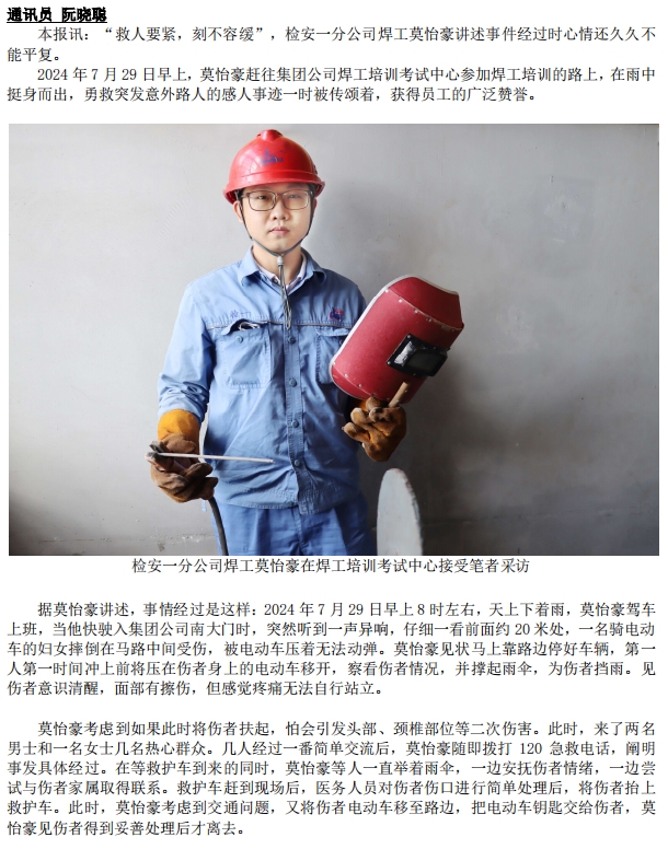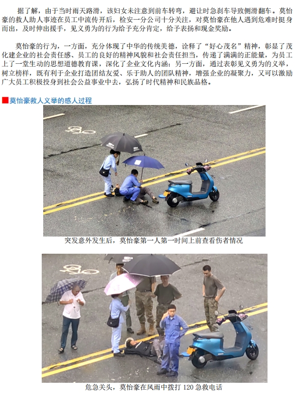 危難時(shí)刻伸援手:員工莫怡豪雨中勇救突發(fā)意外路人獲贊譽(yù)