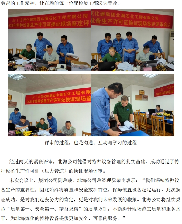 北海公司通過特種設(shè)備生產(chǎn)許可證(壓力管道)換證現(xiàn)場評審