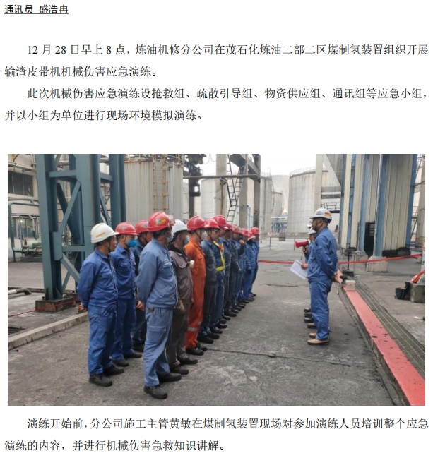 煉油機修開展機械傷害應急演練