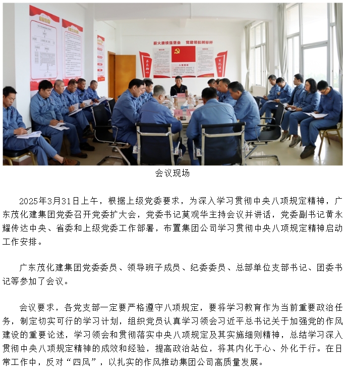 廣東茂化建集團(tuán)黨委召開貫徹中央八項(xiàng)規(guī)定精神學(xué)習(xí)教育部署啟動(dòng)會(huì)