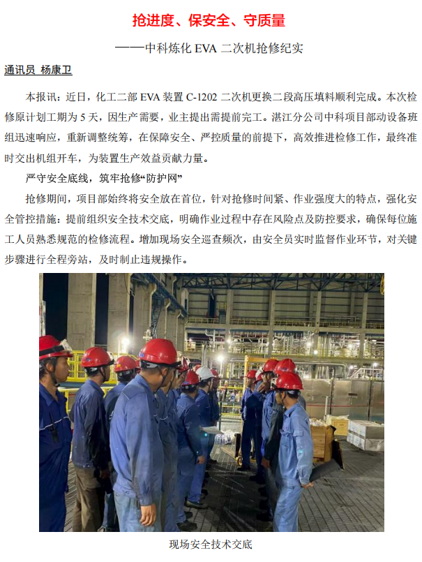 中科煉化 EVA 二次機(jī)搶修紀(jì)實