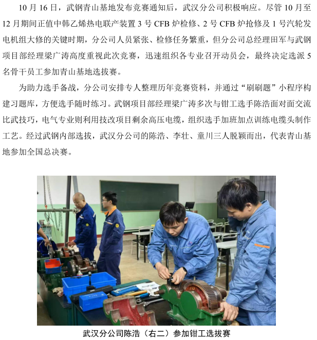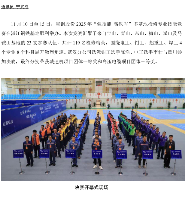 武漢分公司在寶鋼股份2025 年多基地檢修技能 競賽中榮獲佳績