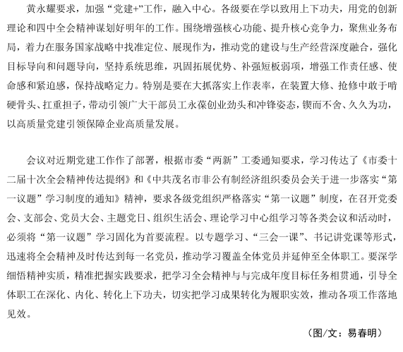 集團(tuán)公司召開(kāi)支部書(shū)記會(huì)議 學(xué)習(xí)貫徹黨二十屆四中全會(huì)精神宣講動(dòng)員